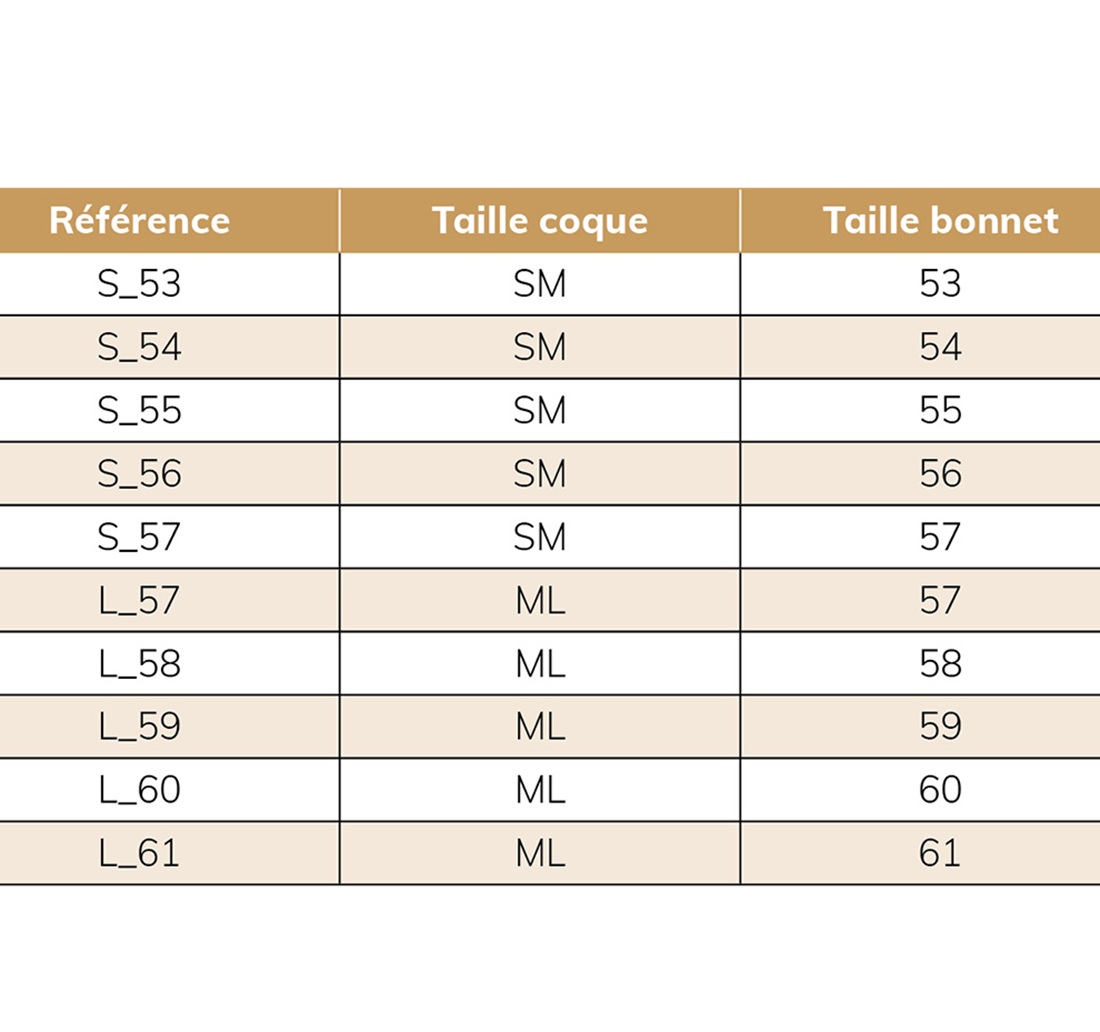 . La mousse intérieur (du 53 au 61) permet d'ajuster la coque au tour de tête ce qui détermine la taille du casque.